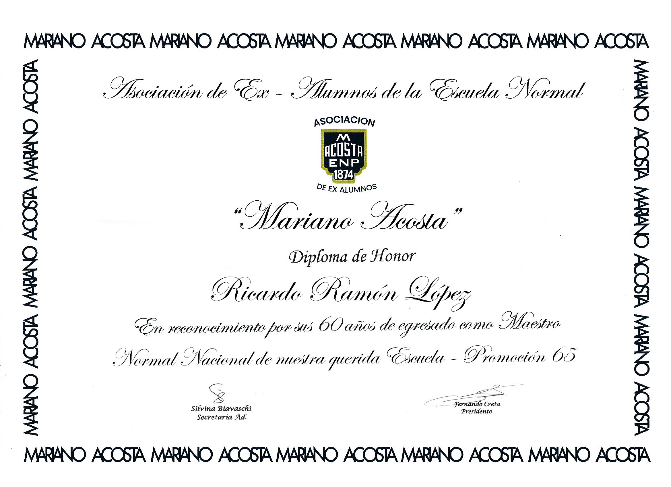 | Diploma recibido por los presentes de parte de la Asociación de Ex Alumnos del Mariano Acosta | |